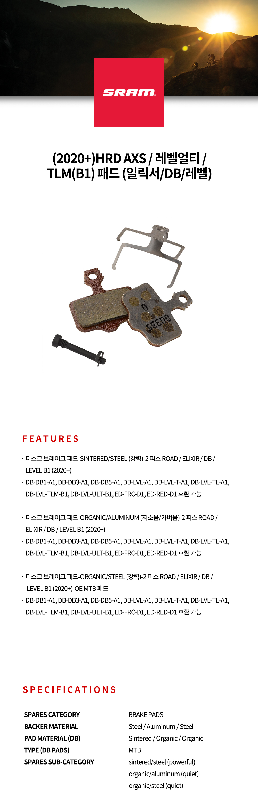 SRAM HRD AXS / 레벨얼티/TLM(B1) 패드 (일릭서/DB/레벨)