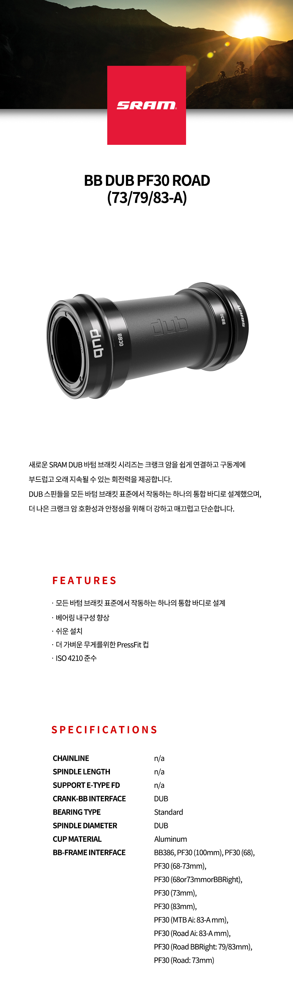 SRAM BB DUB PF30 Road 스램 BB DUB PF30 로드