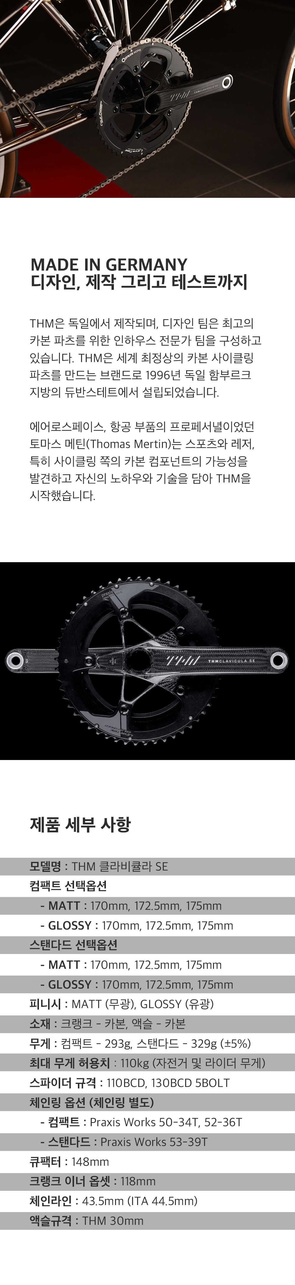 THM 클라비큘라 크랭크는 가벼움과 강성을 동시에 사로잡기 위해 탄생한 제품입니다. 오랜 시간동안 연구한 결과, 놀라우리만큼 단단한 카본 구조물이 탄생했습니다. THM 클라비큘라의 카본 액슬과 크랭크는 사이클링 엔지니어링의 정수입니다.