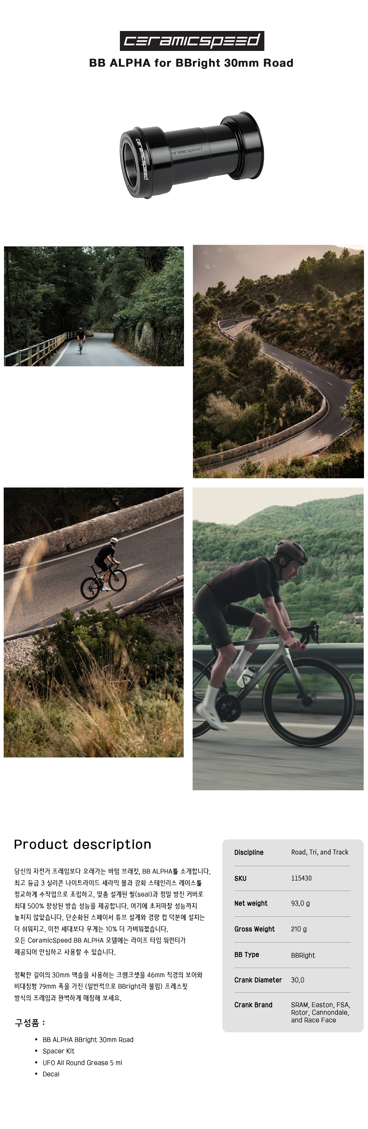 Ceramicspeed BB ALPHA for BBright 30mm Road 세라믹스피드 BB 알파 비비라이트 30mm 로드