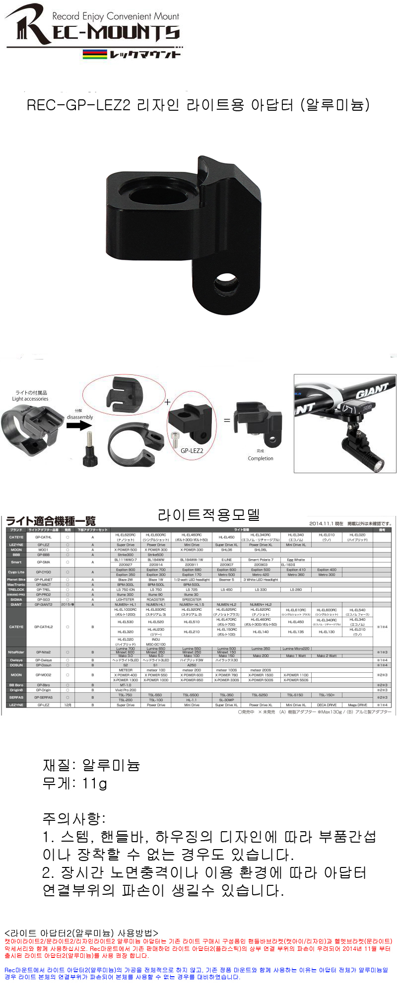 Rec마운트 GP-LEZ2(리자인라이트아답터-알루미늄)